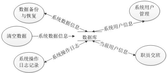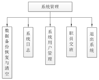 (1)数据备份恢复与清空:每次退出系统时自动备份,也可手动备份恢复 (2)系统日志:记录用户操作信息及系统出错信息 (3)系统用户管理:管理系统用户及其权限 (4)职员交班:切换系统当前用户,统计当班收入,完成交班 (5)退出系统:完全退出系统