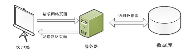 环境为VS2010+SQL Server2008。使用ASP.NET(C#)作为开发运行环境,利用SQL Server2008进行数据存储与管理,以IIS7作为服务器。用户通过浏览器向服务器请求服务,Web服务器接收客户端的请求后,访问数据库,再把数据经过处理发送回客户端的浏览器。访问数据库工作原理如图所示: