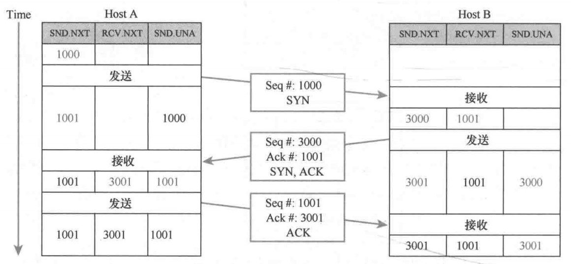 三次握手:连接的初始化过程。主机A发送报文段发起连接,包含SYN标志和一个随机初始序列号。如果主机B愿意,它将响应一个包含SYN和ACK的数据包,并将确认号设置为A的序列号加1,意识是希望主机A发来的下一个报文段的序列号比前一个增加1。同时,主机B也随机选一个序列号。即各自有自己的独立序列号。当主机A收到这个报文段,需要确认主机B的初始序列号,所以发送一个包含ACK标志的报文段。如果A收不到确认,就会重新发送报文段。